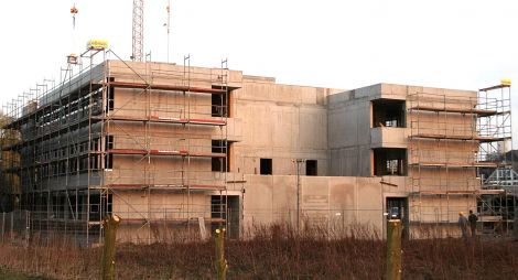 Fertigstellung des Rohbaus im Zusammenhang mit dem Neubau des CeNTech-Instituts (Center for Nano Technology) in Münster.