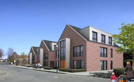 Baubeginn beim Neubau von drei Wohnhäusern mit insgesamt 15 Wohnungen und Tiefgarage in der Aaseestadt in Münster.