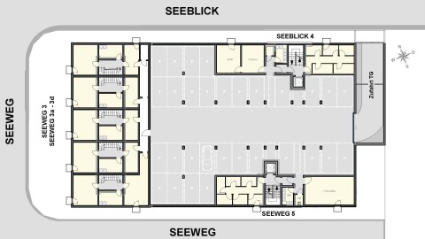 Es stehen insgesamt 30 Kfz-Stellplätze und ein separater Kellerraum zum Abstellen und Laden von E-Bikes oder Fahrrädern im Untergeschoss zur Verfügung.